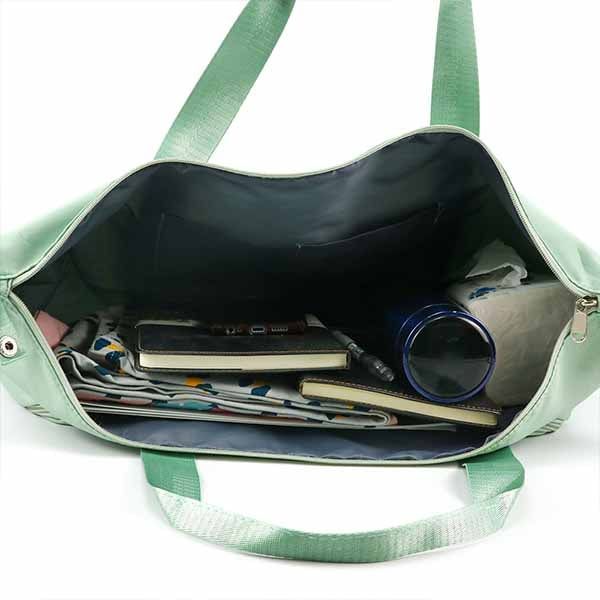 Egyszer összecsukva kis helyen tárolható, kinyitva váratlanul tágas, számos zsebbel is díszítve, amelyek
