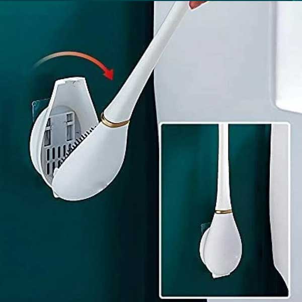 A sua escova de silicone torna-a flexível, mas resistente e o estojo retrátil moderno pode ser posto numa parede sem ter que fazer buracos, graças ao adesivo prático incluído.
